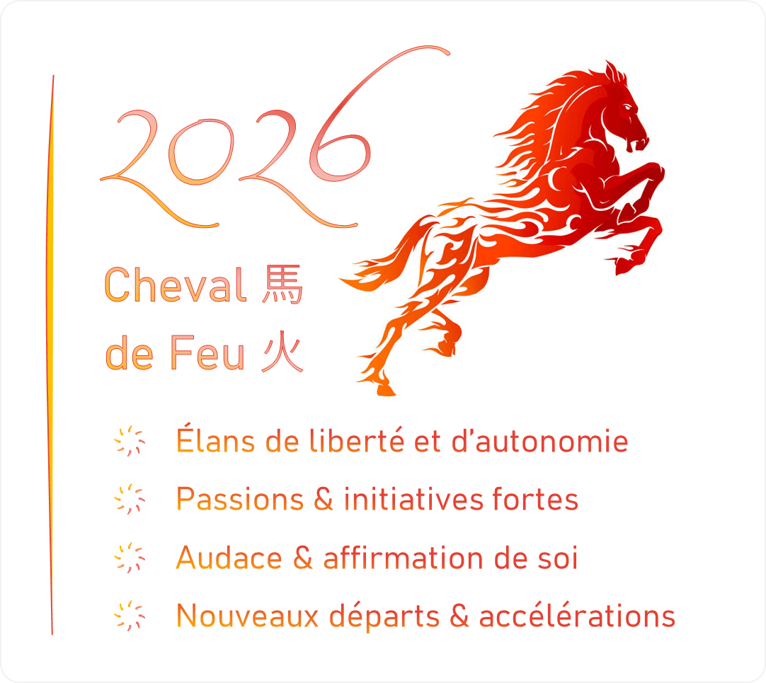 Signe : Cheval 馬 (Mǎ) / Élément : Feu 火 (Huǒ)